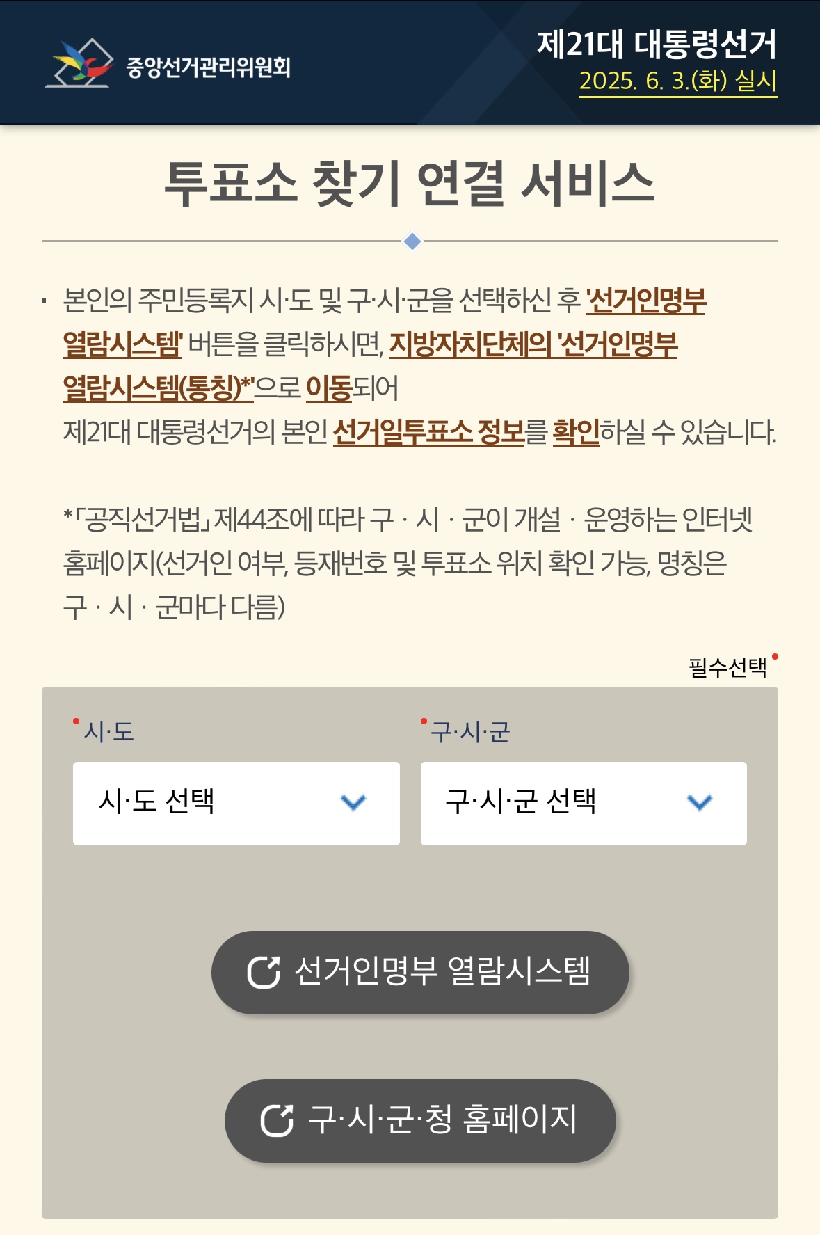 중앙선거관리위원회 - 투표소 찾기 연결 서비스 (옛, 내 투표소 찾기)
